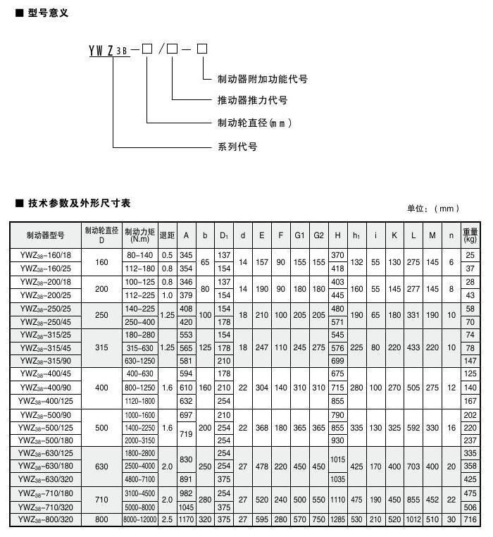 ● 產(chǎn)品型號(hào):YWZ3B-160、YWZ3B-200、YWZ3B-250、YWZ3B-315、YWZ3B-400、YWZ3B-500、YWZ3B-630、YWZ3B-710、YWZ3B-800